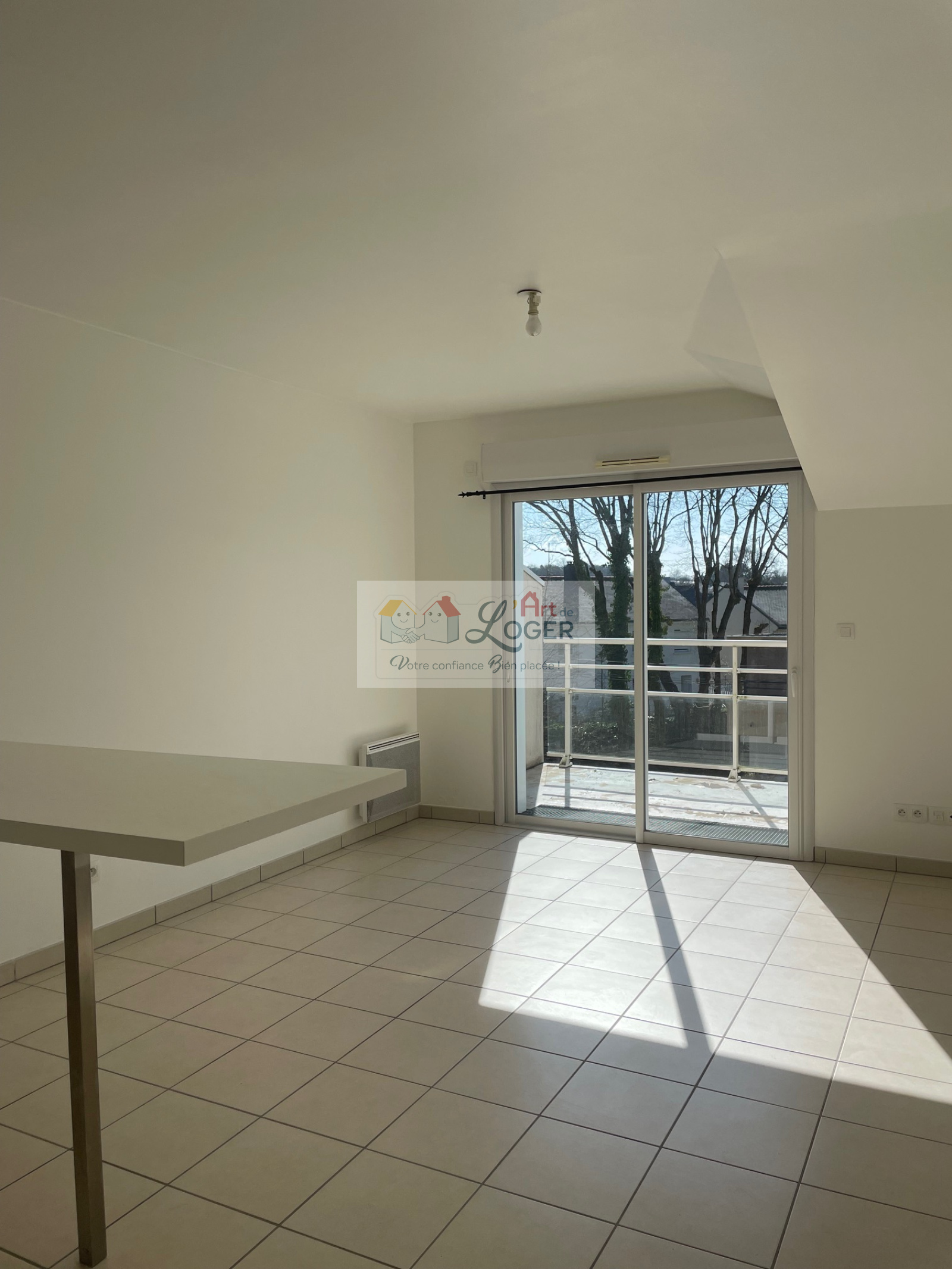 Il se compose d’une entrée, d’un séjour lumineux avec cuisine ouverte et amménagée (hotte, banchement machine) d’environ 21 m² donnant accès à une terrasse d’environ 5 m², d’une belle chambre de 11,68 m², d’une salle de bains ainsi que d’un WC indépendant.